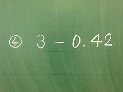 ↑ 4年算数 小数の足し算と引き算です。小数点をそろえることをお忘れなく。