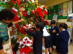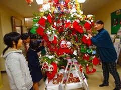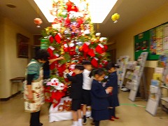 見事なクリスマスツリーは笠野公民館で子供たちが飾り付けを楽しんで完成したものです。冬って、楽しいですね。