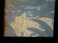 ↑ 郡市図画作品展(低学年)に展示されている本校児童の作品です。表情がとても素晴らしいです。色づかいも濃淡があり、とてもいいですね。