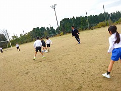 ↓ 5,6年ベースボール型ゲーム です。 大空めがけて、思いっきりかっ飛ばしました。守備もなかなか手ごわかったです。