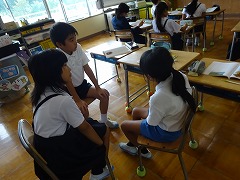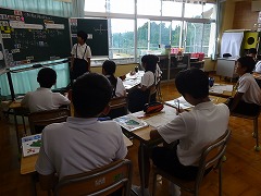 ↓ こちらは6年生の国語です。意見を聞き合って考えを深める学習です。自ら集めた情報を整理し,自分の考えが説得力を増すように,意見文を書きました。今日はその発表会をしました。聞く人は,友達の意見と自分の意見を比べながら聞き,似ているところや,違うところは何か,考えながら聞く力を養っています。