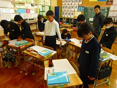 ↑ 5,6年 家庭科 ミシンで布を縫いました。5,6年生の教え合いがいいですね。