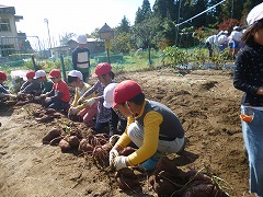 ↓ 1,2年生が芋ほりをしました。今年は豊作でした。大きなサツマイモがゴロゴロ顔を出してきましたよ。畑の先生に教えていただいたおかげです。ありがとうございます。子供たちも大喜び、このサツマイモで今後、パーティーを予定しています。