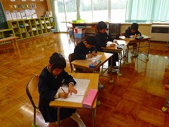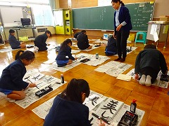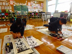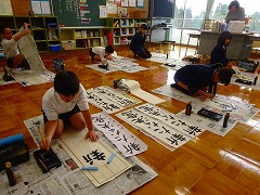 ↓ 3年生は「美しい心」、4年生は「流れる星」を見事、力強く書き上げました。