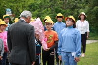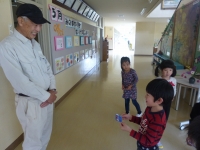↓引き続き,日本野鳥の会と石川県猟友会の先生をお招きし,笠野の森と学校周辺の探鳥会を行いました.学校前に11種類の鳥のさえずりが聞こえ,中庭では,新たに3種類の鳥のさえずりが聞こえたということで,本当に自然豊かな環境を嬉しく思います.子供たちは,早速,双眼鏡を覗いて,アンテナにとまっていたセグロセキレイを観察しました.
