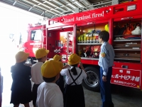 ↓4年社会 消防署見学 町の消防署見学に行ってきました.丁寧に説明して頂き,火事になったら早く出動し,消火できるひみつをたくさん見つけることが出来ました.丁寧に教えていただき,ありがとうございました.
