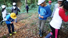 総合的な学習の時間に,笠野の森に行ってきました。学習の課題は,「春とのちがいを見つけよう」です。森に入る前から,空をとんでいるトンボを見て秋を感じ,森の中では,足下に広がるどんぐり,木の根本にあるコケ,赤く色づいた葉など,たくさんの秋を見つけ,春の森とは違う様子を楽しむことができました。授業の最後には,みんなで目を閉じ,森の音を聴きました。虫の声,鳥のさえずり,風に揺れる葉の音・・・。耳でも,秋の便りを感じることができました。(登美)