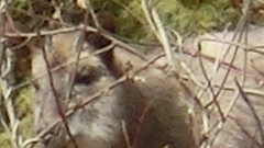 午前11時45分頃,3・4年生が図工室で図工の学習をしていたところ,窓から見える正面の斜面に,カモシカ(角らしきものが2本見えますので,おそらくそうだと思われます)が2頭いました。距離が近いとはいえ,斜面下部はコンクリートブロック(1m程度の高さ)の壁となっており,そこを降りて学校の敷地に侵入することはあまり考えられませんが,万が一の事態も想定されるため,全校児童に諸注意を行いました。