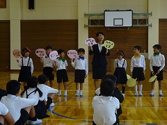 ↓ 10月全校集会 10月は「かみなづき」,秋の百人一首,菅原道真の「このたびは ぬさもとりあえず 手向山 もみじのにしき 神のまにまに」を紹介し,それから,私が思う「笠野小学校のよさ」について子供たちに伝えました。小規模校のよさは,よき伝統として子供たちに受け継がれています。それを,みんなで共有し,さらに,進化させていきたいと思います。