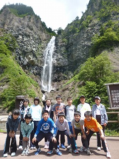 壮大な滝をバックに集合写真 ふくべの滝 大きいな~