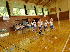 ↓ 1年生が高学年に長縄跳びの仕方を教えてもらいました。スムーズに大繩に入るタイミングがつかめたようです。ダイナミックに飛び越えていました。