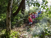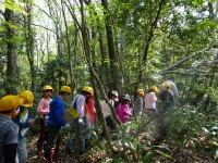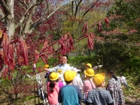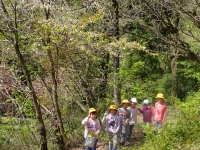 ↓3.4年生は総合で「春の自然」体験に「笠野の森」へ入りました.鳥のさえずりは「ホーホケキョ」,「ケーン,ケーン」と森に響き,ブナの新緑に木漏れ日が当たり,自然を満喫できました.森にはなんとターザンロープがあり,春の風をきって楽しんでいました.国語の「きつつきの商売」の森を想像できました.