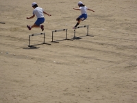 ↓5,6年 体育 ハードルでフォームを練習しました.よいホームを見て学び,自分に取り入れようと何回も練習しました.