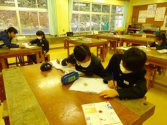 ↓ こちらは3年生の理科です。これまでの学習を振り返り、電池、磁石、ゴムの力を利用したおもちゃ作りに挑戦です。計画を立てて、発表会をします。1.2年生に発明したおもちゃで楽しんでもらうそうですよ。