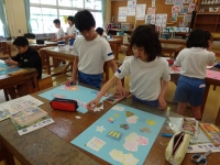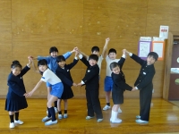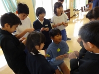 ↓ 「なかよしグループ」の発足式を行いました.上級生がリードして自己紹介やグループのめあてを説明して,なんともほほえましい様子がたくさん見られました.