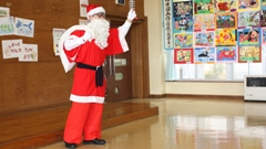 2学期最後の給食。この日の給食中,突然鈴の音が聞こえたかと思うと,本物のサンタクロースが現れました!(正体は校長先生だという噂がありますが,それは何かの間違いです。)本物のサンタクロースは,児童・職員全員に,とってもおいしい(公民館からいただいた)手作りのクリスマスマフィンをプレゼントしてくれました。ありがとうサンタクロース!来年もまた来てくださいね!!