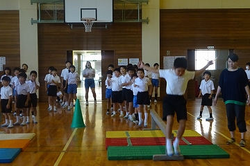↓ 長休み なかよしタイム 5年生が障害物競走を企画し,準備と運営をしてくれました.バラエティに富んだバランス感覚と敏捷性を鍛えられる楽しいコースでした.AチームとBティームの対戦でしたが,最後はAティームの素晴らしい追い上げで,タッチの差でBチームの逃げ切り勝ちでした.5年生の後片付けに6年生も積極的に手伝い,よい連携プレーでした.