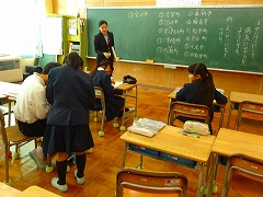 ↑ 2年国語 ようすを表す言葉 雨がものすごい勢いで降る様子を言葉で表現する学習です。このような学習によって言葉の豊かな感性を育てています。ITCも効果的に活用しています。