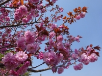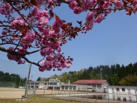 ↓ 八重桜が見事に咲き誇っています.笠野小は桜の木に囲まれている学校です.
