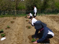 ↓理科 野菜の苗植えや種まきをしました.生長を楽しみにして観察してください.畑を耕し,畝を作ってくださった方々へ感謝の気持ちを伝えることができたら素敵ですね.
