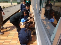 ↓1年生初めての掃除 上級生が優しく教えてくれたので,1年生は掃除の仕方が分かり一生懸命頑張りました.黙って静かに掃除をして,教室も廊下も,心の中もピカピカに磨かれています.