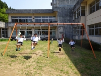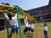 ↓お天気がいいので,1,2年生は元気に遊具で遊びました.