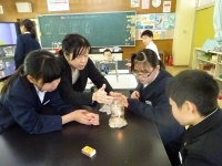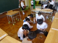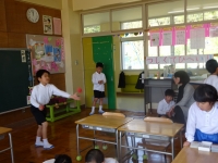 ↓2年生 1年生と仲良くする会を計画!司会さんが上手に会を進行しました.こままわしやおはじき,お手玉など2年生が見本を見せてあげ,1年生は大喜びです.1,2年生一緒に楽しみました.