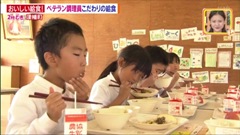 北陸朝日放送の某番組で,県内の給食について取り上げる企画があり,本校が取材され,その模様が放送されました。私も取材されたのですが,「給食を残す児童はほとんどいません。」と訂正したのに,「全くいません。」と最初に言った内容のまま放送されてしまいました。まあ,放送局の気持ちも分かりますが。