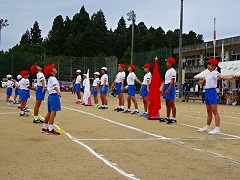 ↑応援合戦、高学年がすべて自分たちで考え創り上げました。アイディアを出し、相談して折り合いをつけて決定し、下級生に教えていきました。応援合戦を通して、チームをまとめ、つくり上げる楽しみと充実感を感じたことでしょう。
