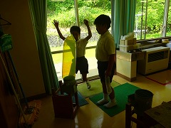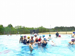 ↓ そのあとで、仲良し班でプールに入りました。小学校のプールに初めて入った1年生は、6年生がおんぶしてくれたので安心でした。