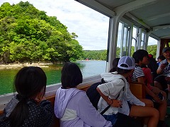 ↑ 1日目午前、海洋ふれあいふれあいセンターから、遊覧船で九十九湾の自然を満喫しました。