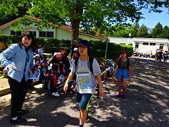 ↑全員で、今日の振り返りをしています。この振り返りを、お互いの学校の良さを実感できる学び合いの場と考え、両校とも大切にしています。全員意見を言うことができました。