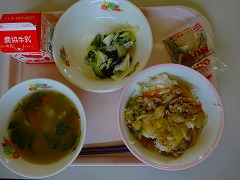 ↑ 今日の給食は、月見団子汁です。今日は月齢13です。「とても澄み渡るきれいな月は、実は13夜です」と給食放送の児童が教えてくれました。