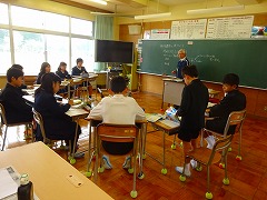 ↓ 英語 5,6年生 今年から、ALTの先生が、お二人来てくださることになりました。2020年からの外国語の授業全面実施に向けて、今年もしっかりと力をつけていきます。目を見て、英会話を楽しんでいます。