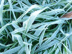 ↑今朝は、草木の息吹で真っ白に霜が降り、その霜に朝日が当たり一面ダイヤモンドの輝きの里となっています。