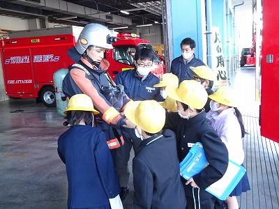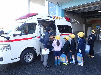 本日、午前中、3年生が社会科見学で津幡町消防本部に行きました。消防署の一日などの説明を聞いた後、施設内の見学をし、最後に救急車や消防車の説明を聞きました。署員の方の話にしっかり反応して、積極的に質問している姿が印象的でした。