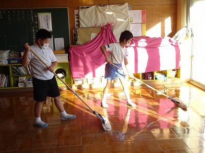 本日、4~6年生で教室のワックスがけをしました。最初に英先生からワックスがけについての説明を聞いた後、各教室ごとに分かれて、ワックスがけをしました。初めてワックスがけをするようで、最初は慣れない様子でしたが、徐々に手際よくなっていきました。おかげでどの教室もピカピカになりました。明日からきれいになった教室で、さらに勉強頑張れますね。ありがとうございました。