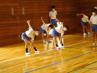 本日1限目に全校で町歌体操の練習を体育館で行いました。最初になかよしグループごとに分かれて、上級生が下級生に教え、最後に全校で合わせてみました。今まで何度か練習しているおかげで、1,2年生もかなりいい感じでできていました。本番が楽しみです。