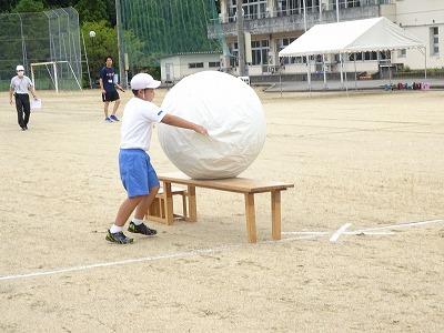 今日は3限目に、運動会の団体競技の練習をしました。昨年度まで綱引きを行っていましたが、今年度は、「密」をできるだけ避けるために「大玉運び」になりました。本山先生からルールの説明を聞いた後、実際にやってみました。低学年は、大玉をコントロールするのに苦労していましたが、さすが高学年は、上手にまっすぐ、速く転がしていました。本番ではどちらのチームが勝つか楽しみです。