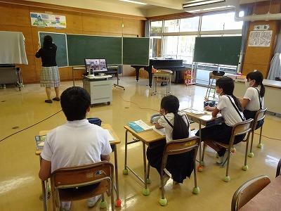 2限目、5年生が遠隔で刈安小学校の5年生と国語の授業を行いました。これから「討論」するために大事なことについての授業でした。刈安小学校の林先生が主に授業を進めていくのですが、やや緊張気味という様子でした。次の時間、「住むなら田舎がいいか、都会がいいか」というテーマで討論するようです。どんな討論になるか楽しみです。