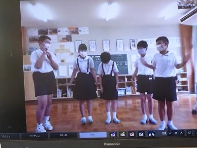 ☆5,6年生 刈安小学校と遠隔交流している様子です。