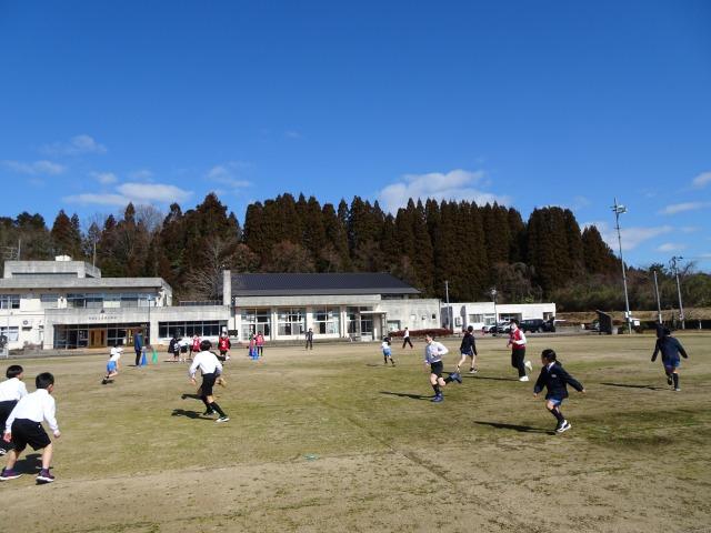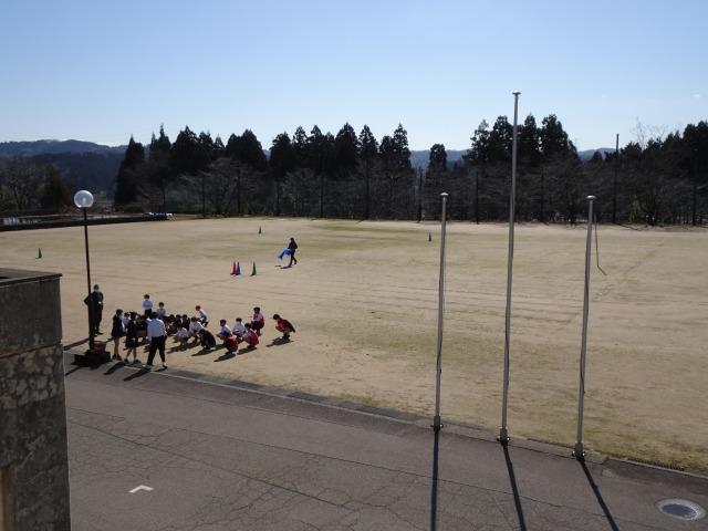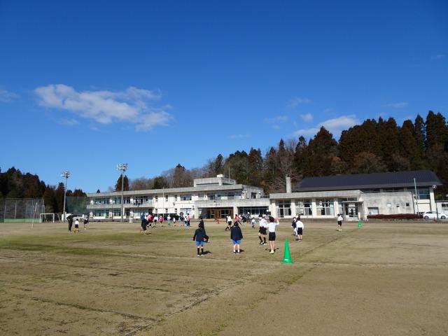 運動場の積雪はすっかりなくなり、朝から美しい青空が広がっています。今日の全校なかよし遊びは、外で鬼ごっこでした。久しぶりの外での鬼ごっこに、子どもたちの歓声が青空まで届くようでした。