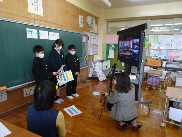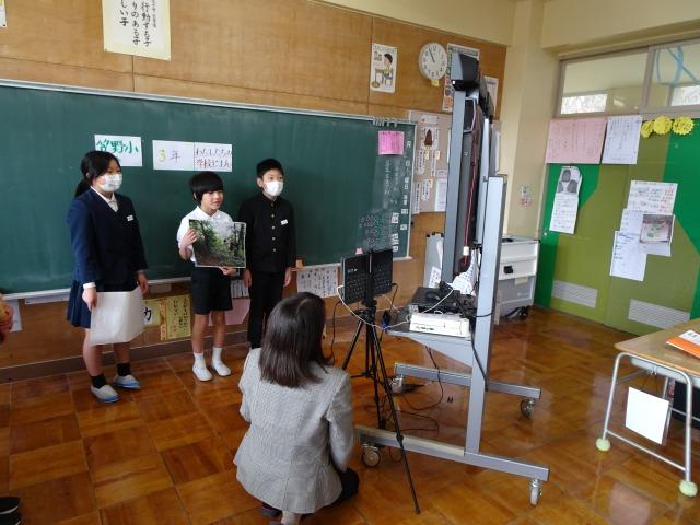 3年生は学校の自慢を、4年生は自分たちで調査したことの紹介をしました。カメラの前で堂々と発表することができていました。