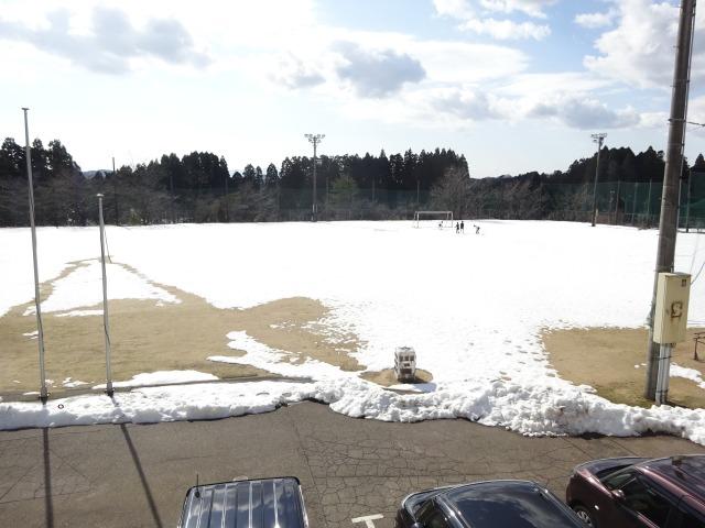 先月末には40cm程度まで達した本校グランドの雪も今ではこの通りです。ここ最近の温かさで地面が見えるまでになりました。休み時間に、残った雪上でサッカーをしていました。子どもたちは元気ですね。