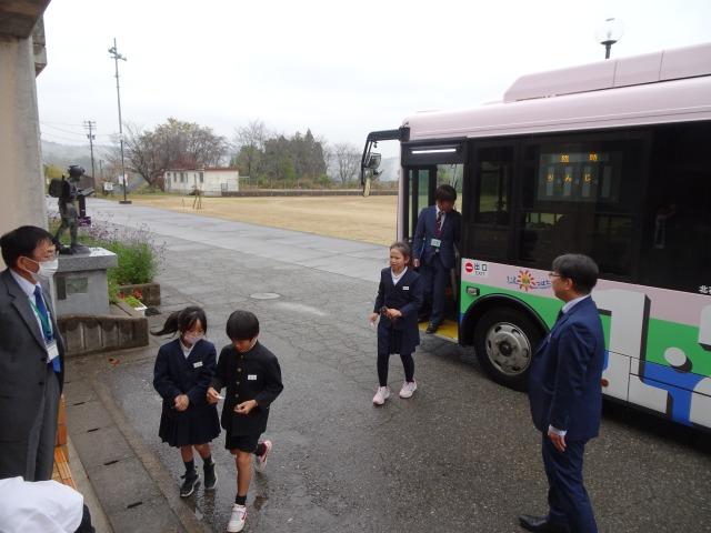 3年生が町営バスの乗車体験を行いました。「整理券をとって乗車し降車ボタンを押して降りる」練習や町営バスに関するクイズに挑戦してから実際に乗車しました。校区内「学校~池ケ原~鳥屋尾~岩崎~学校」を町営バスでまわってきました。あいにくの雨でしたが,よい体験ができました。