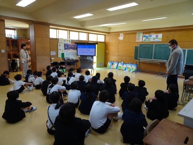 全校朝会が行われました。マスクなしの校歌は声が響いて素敵でした。今月の生活目標や今日から始まる鉄棒運動についての話がありました。休み時間は,さっそく鉄棒をがんばっている児童がいました。