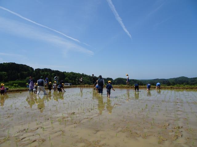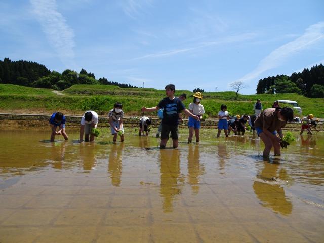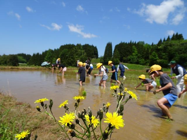 朝はひんやり肌寒かったものの,日中は気温が上がり心地よい気候となりました。好天の中,3年生以上の児童が気持ちよく田植えをすることができました。思うように足を運べずに苦労している姿もありましたが,こういった経験をすることで,農家への感謝の気持ちが育ったり,お米のありがたさに気づいたりできるといいです。