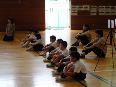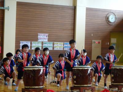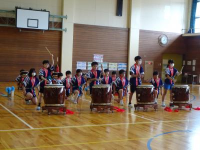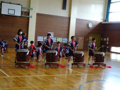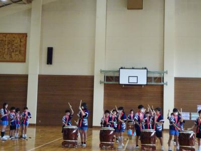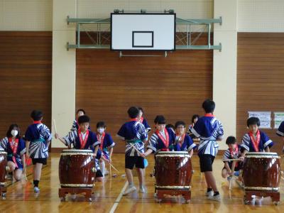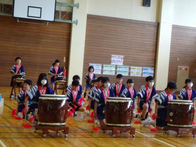 5限目「でんでこ太鼓~火と水と音の広がり~」を校内で発表しました。大きい太鼓の音は,力強くお腹までどんどん響き,小さい太鼓の音は,小気味よいリズムを響かせ,笛は美しいメロディーを奏でていました。とてもかっこよかったです。練習の成果を発揮できましたね。本番が楽しみです。
