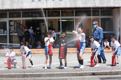 避難訓練と消火器体験