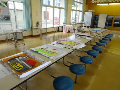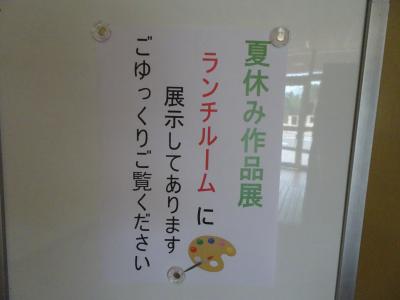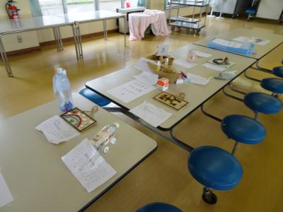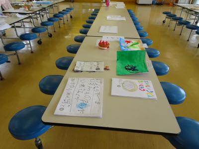 夏休みの作品を展示しています。ダンボールを利用して手回しサッカーゲームや海賊船を,ペットボトルキャップを溶かしてキーホルダーをつくりました。また,「ラムネの秘密」や「オリンピックの常識」,「ストローを使って静電気の実験」など,実験したり,調べたりしたことをまとめました。最後までがんばりました。ご家庭でのご協力ありがとうございました。